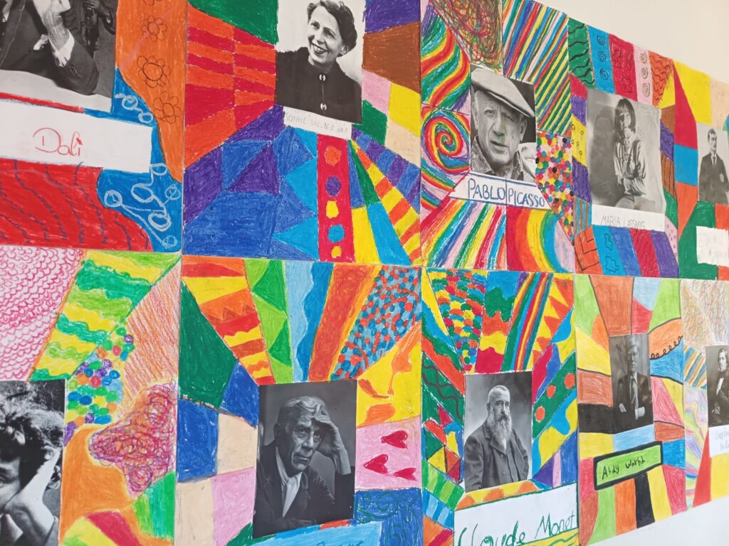 Die Schülerinnen und Schüler lernten die unterschiedlichen Stilrichtungen kennen und setzten sich mit den Besonderheiten der einzelnen Künstler auseinander. Anschließend gestalteten sie eigene Kunstwerke, inspiriert von den jeweiligen Stilen – von farbenfrohen Mustern über abstrakte Formen bis hin zu spannenden Kompositionen.